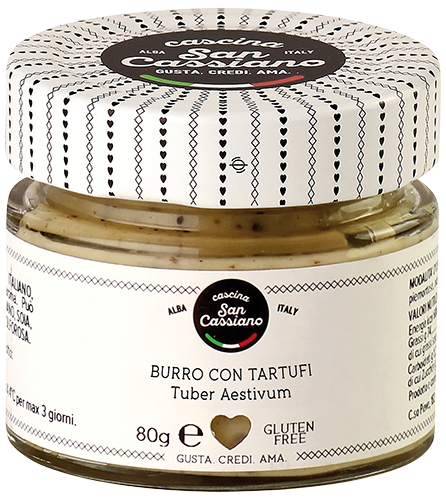 Gustoso burro preparato con latte piemontese, aromatizzato al tartufo Tuber Aestivum. Si conserva fuori frigo fino all’apertura. Ideale come base per tartine, condire primi piatti di pasta o riso, secondi piatti a base di carne o uova.