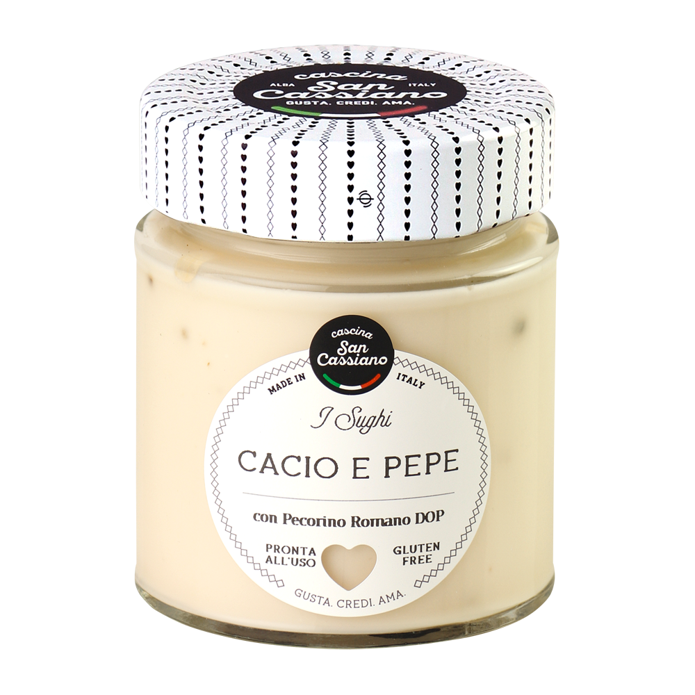 Salsa preparata con “Pecorino Romano D.O.P.” e pepe, seguendo un’antica ricetta dell’Italia centrale. Ottima per condire primi piatti a base di pasta o riso. E’ eccellente quando usata nella preparazione di piatti a base di pollo e nella realizzazione di finger food. Senza lattosio.