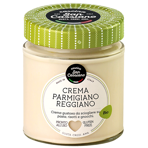Vellutata crema biologica preparata con Parmigiano Reggiano D.O.P.. Pronta all’uso, è ideale per condire primi piatti a base di pasta o riso preferibilmente biologici, e per impreziosire sformati di verdure.
