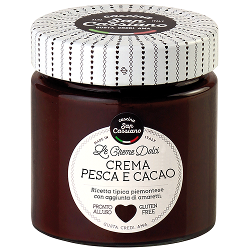 Il sapore della pesca incontra la prelibatezza del cacao e la dolcezza degli amaretti in questa deliziosa crema. Ideale come dessert o spalmata sul pane, per guarnire torte, gelati e yogurt. Ottima per guarnire la frutta al forno. Disponibile anche in versione Gluten Free