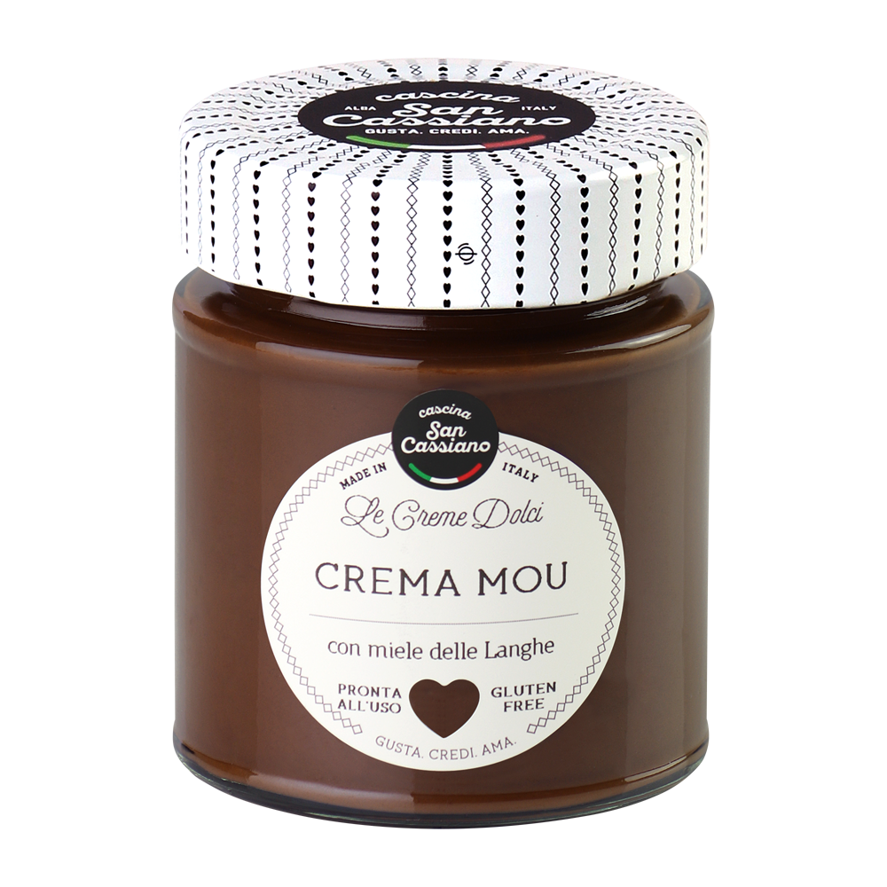 Golosa crema mou preparata con miele delle Langhe e latte da agricoltura simbiotica Erbalatte ad alta concentrazione di proteine e vitamine A e E . La qualità superiore di questo latte conferisce alla crema un sapore naturale e intenso. Ottima sul pane, sui biscotti, sul gelato.