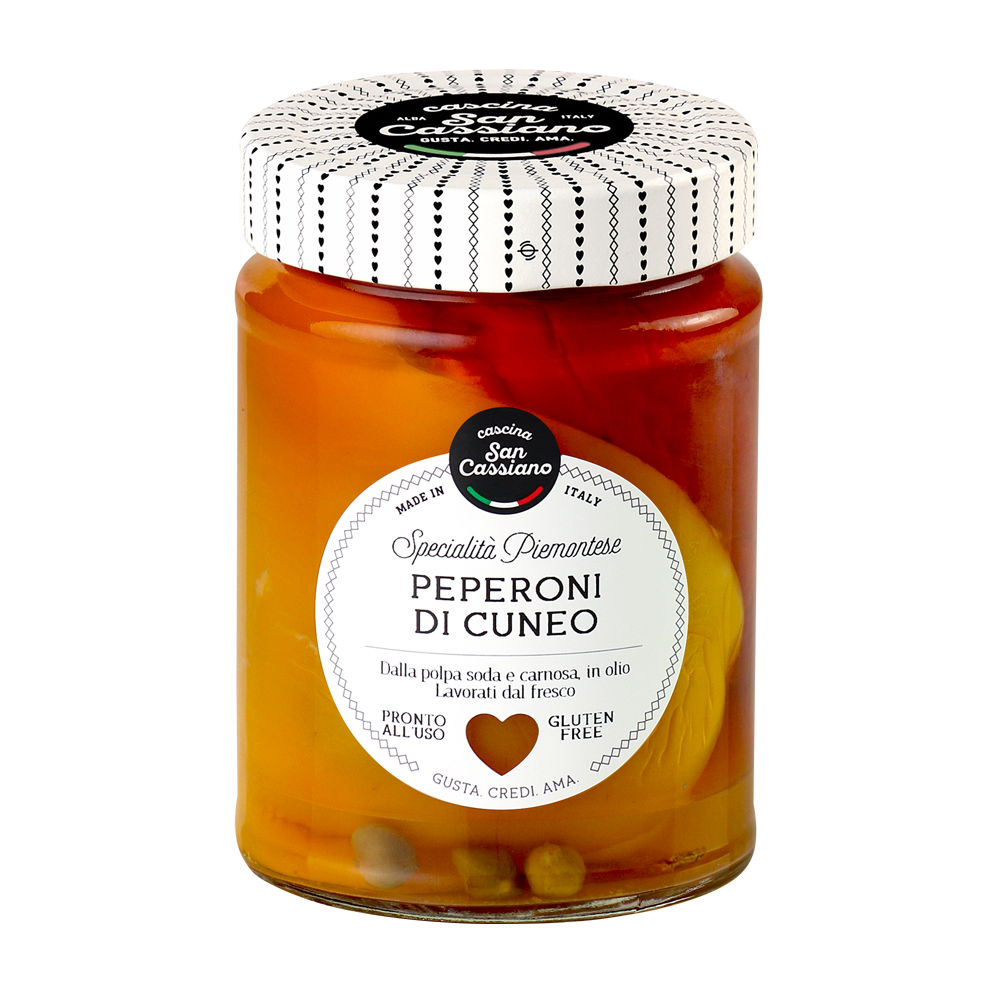 Pregiati peperoni di Cuneo dalla polpa carnosa, lavorati a fresco e conservati in olio. Ottimi come antipasto, come contorno e per preparare sfiziose tartine e saporite insalate.