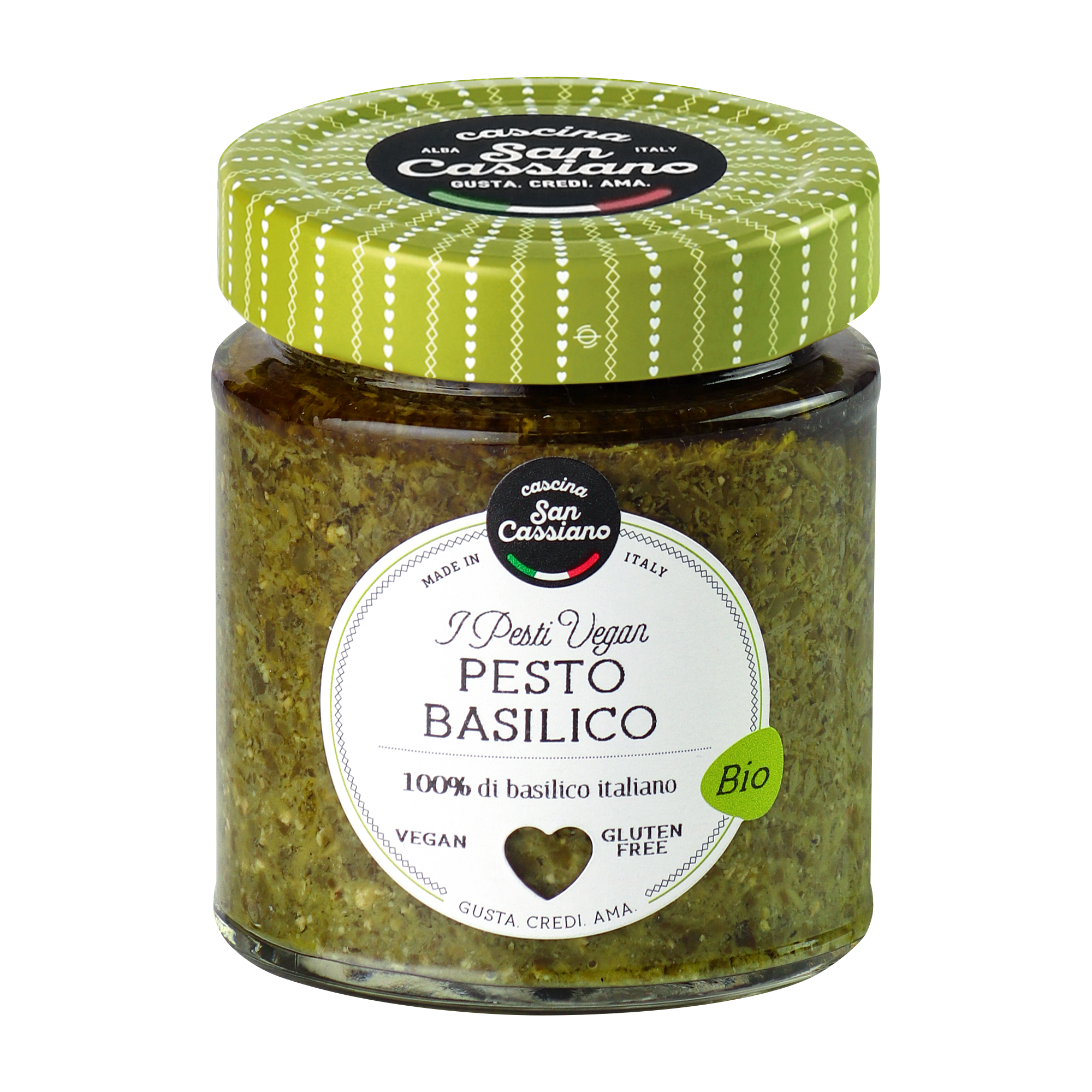 Versione biologica e vegana del pesto classico, preparata con un’alta percentuale di basilico. Ideale per condire primi piatti a base di pasta, in particolare trofie o spaghetti.