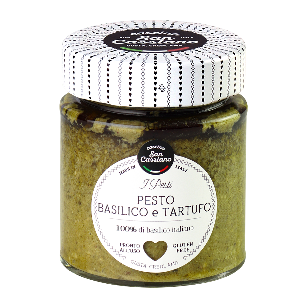 Prezioso pesto dal gusto molto aromatico preparato con un’alta percentuale di basilico e l’aggiunta di Tartufo nero che conferisce al prodotto una intensa nota boschiva. Condimento ideale per tutti i tipi di pasta e i risotti; è una raffinata finitura per accompagnare piatti a base di carne, sulle uova e per impreziosire tartine e canapè.