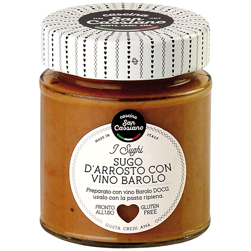 Salsa aromatica preparata con estratti di carne e pregiato vino Barolo, ideale per condire primi piatti a base di pasta o polenta. Ottima anche per farcire pasta ripiena o spalmata sul pane. Questo prodotto è disponibile anche in vaso da 190g.