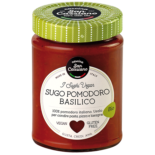 Sugo biologico preparato con pomodoro 100% italiano e basilico, pronto all’uso. Ideale per condire primi piatti a base di pasta, sformati di verdure e preparare lasagne vegane.