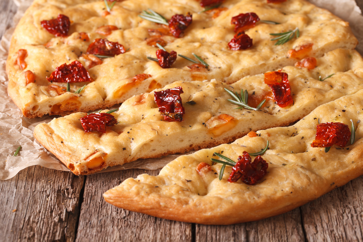 La focaccia con pomodori secchi e olive taggiasche in olio d’oliva è un rustico antipasto, ideale per tutte le stagioni e ottimo per tutti i palati. Dalla consistenza soffice, questo piatto può essere servito come piatto unico o come accompagnamento a taglieri di salumi ed a secondi piatti. Il sapore deciso dei nostri pomodori secchi e la delicatezza delle olive taggiasche, sono eccellenti per insaporire questa focaccia da accompagnare ad un buon bicchiere di vino rosso.