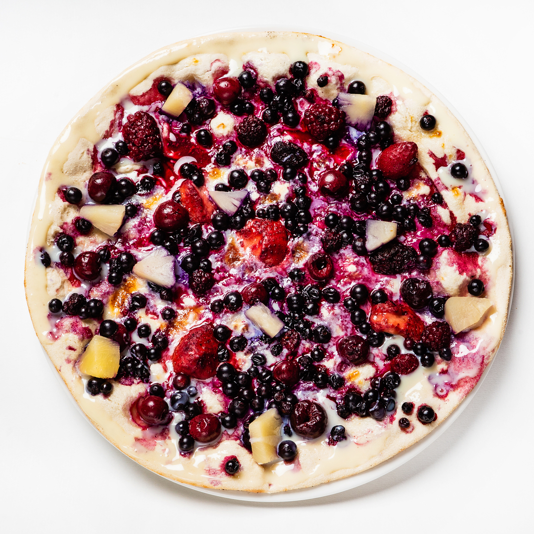 Tutti conosciamo la pizza tradizionale ed i suoi ingredienti, ma perché non provare qualcosa di nuovo ed audace come la pizza dolce? Molto amata dai bambini, si tratta di un dolce divertente, colorato e facile da preparare. In questa versione abbiamo utilizzato la Confettura Extra di Mirtilli Cascina San Cassiano, ma provala anche con la Crema di Gianduja Cascina San Cassiano. Se sei celiaco, utilizza la farina di riso o quella senza glutine!